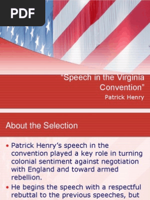 Patrick Henrys famed Speech at the Virginia Convention is a classic piece of American oratory and using the text in history or English language arts is. Download the entire Speech to the Convention study guide as a printable PDF.